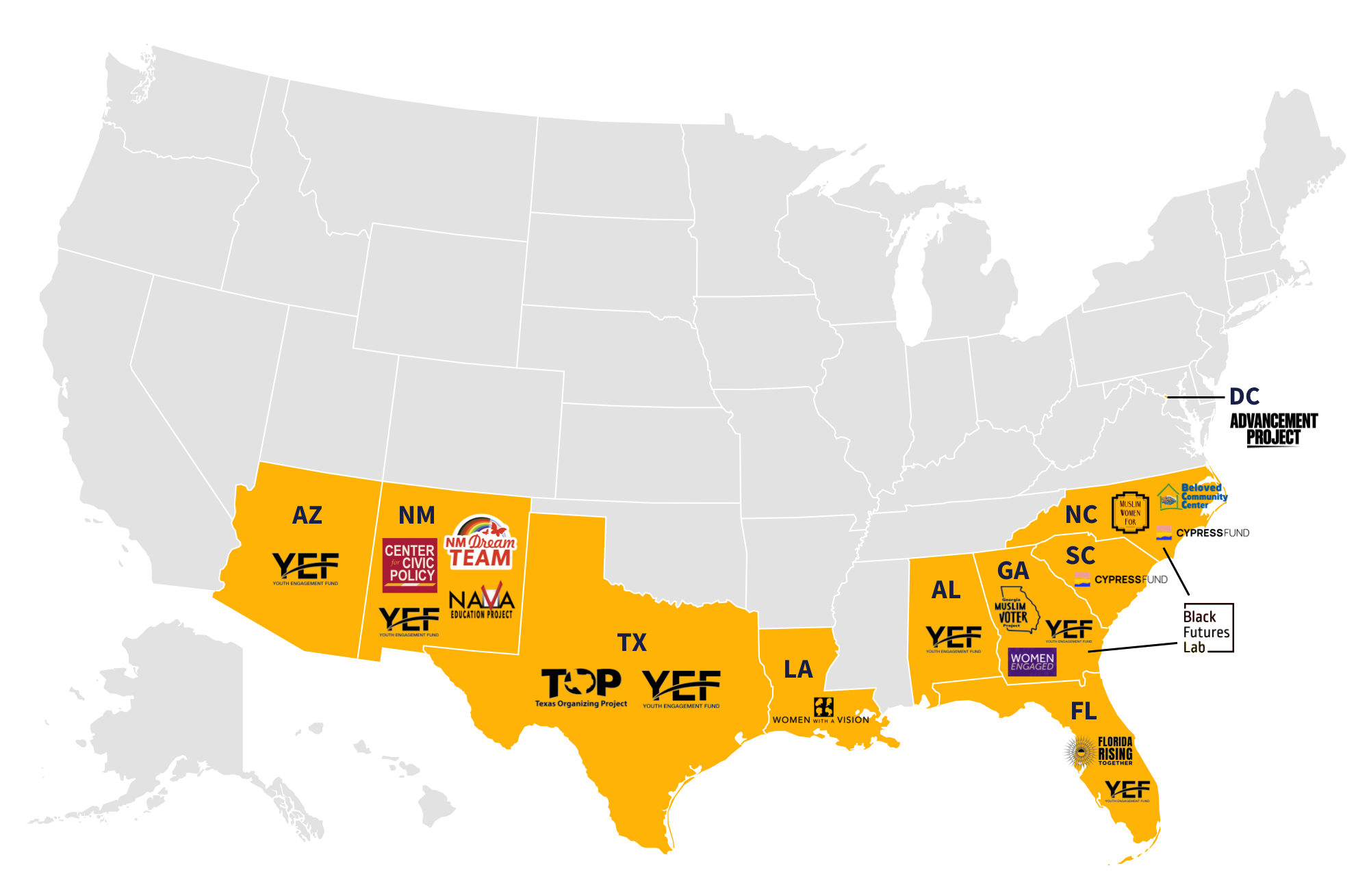 This included organizations taking a community-informed approach, led by and primarily working with Black, Latino, Asian, and Indigenous people, building long-term political power, and having sound compliance and governance infrastructure in the South. The docket also emphasized supporting youth leadership and promoting environmental justice and health. We also implemented in-depth 1:1 organizational interview, minimal reporting strategies, as well as staff and board engagement to inform decision-making and grantmaking prioritization.
